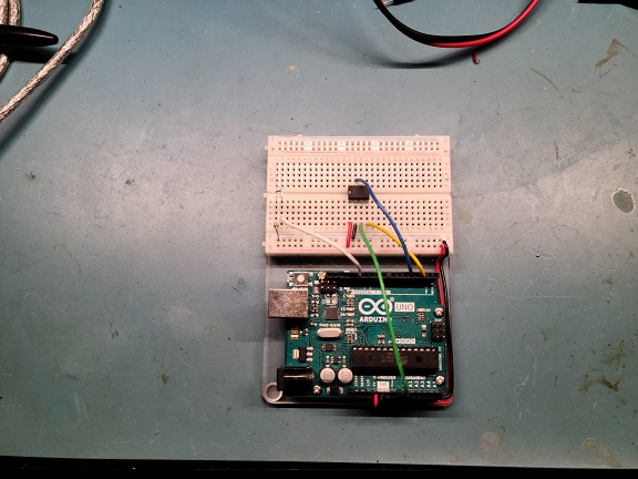 Also started wiring the audio sync circuit for the jaw (and maybe the eyes) using the MSGEQ7 chip. This chip is often used to sync LED light strips to music. I'm hoping I can seperate out voice frequencies and use that to move the mouth. I need to order some more components for this, so with mail being like it is, it may take a couple of days to get here.