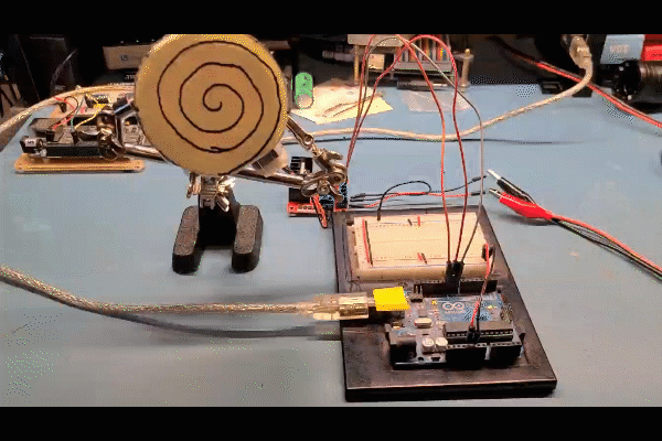 Moved the prototyping board to the animatronic and wired in the existing motor and top/bottom limit switches. Also wired audio board with some temporary speakers. It's Alive!!