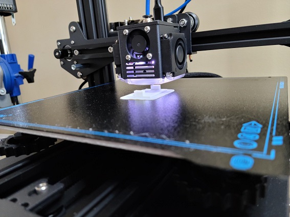 Fired up the 3D printer to print the custom backet for the proximity sensor. Below are the pics of the print in progress, the completed bracket and with a little hot-glue & velcro mounted in the doll.