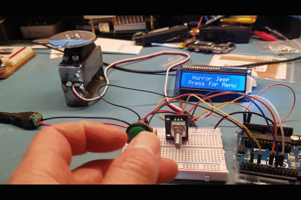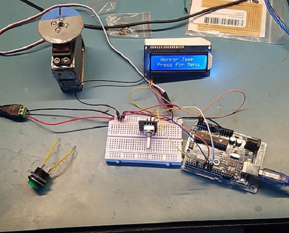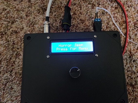 This project was a request from someone I met at a car show, he owns the "Horror Jeep" here in Maryland. The Jeep is currently full of different static displays such as Freddy Krueger, Jason, the Jeepers Creepers monster, etc. We decided to make the Jeepers Creepers monster turn its head towards the crowd when triggered. Features such as remote control and "random" mode were added to improve versatility. The center, left and right stop positions, turn direction, trigger delay and "stare" time can all be configured by using the front display. The timeline on this is not typical of the normal turn-around. There were no car shows and other priorities took precident at the time. This one had to be completely fabricated from scratch, everything from welding brackets to 500+ lines of coding.