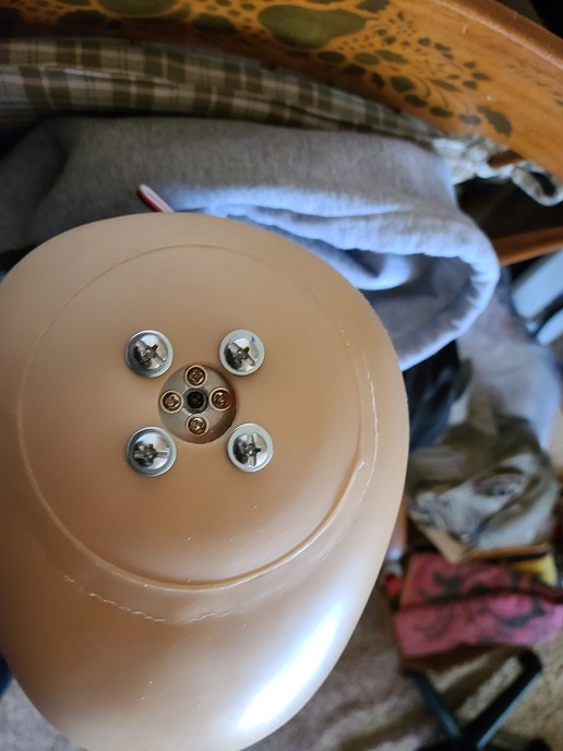 Trimmed and re-drilled holes in "Lazy Susan" mechanism to fit on mannequin neck: